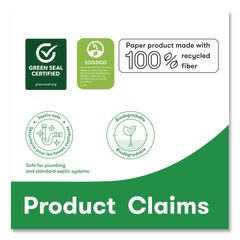 Made from recycled fiber and whitened without chlorine. Tissue Type: Toilet; Number of Plies: 2; Width: 3.45"; Length: 1,250 ft.